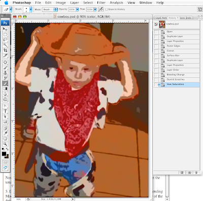 4. Now, return to your original cowboy color image. First, we want to change the tone of the image to mimic the unreal colors of those old, cheap reproductions.